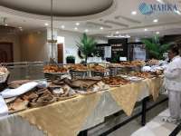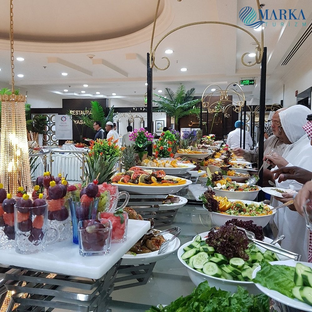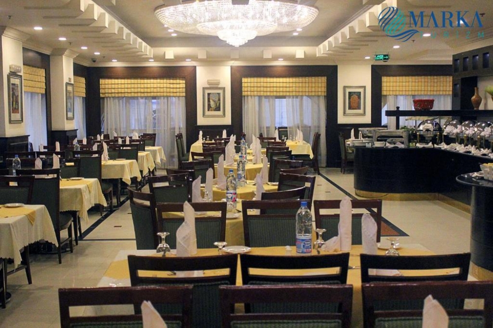 Yemek ile ilgili olanaklar ücretli açık büfe kahvaltı, iki tane restoran, şarküteri ve hafif yemek büfesi şeklindedir.